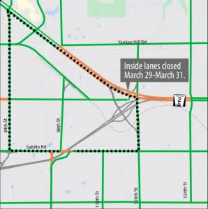 Weather permitting, changes to traffic are anticipated in the area of South 120th Street and N-2 between mile marker (MM) 466 and MM 469 for the construction of the east