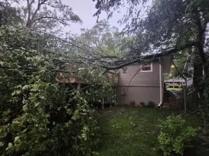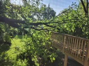 Actually, it’s about half a tree, the biggest branch off one of the neighbor’s tree. In fact, we’d just talked about having it trimmed a couple weeks ago. An independent tree guy said he wanted $1,000 just for that branch.
