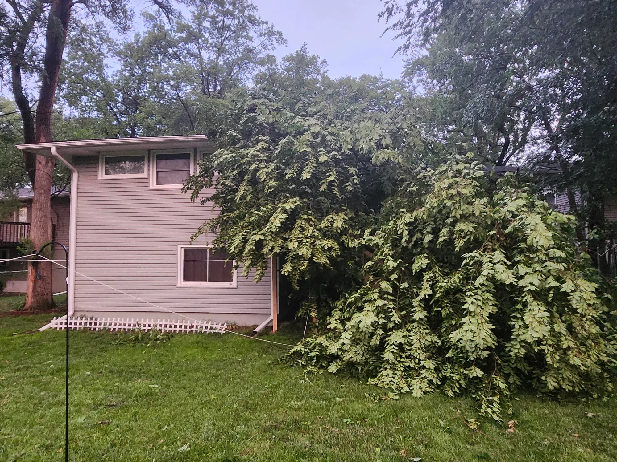 Actually, it’s about half a tree, the biggest branch off one of the neighbor’s tree. In fact, we’d just talked about having it trimmed a couple weeks ago. An independent tree guy said he wanted $1,000 just for that branch.