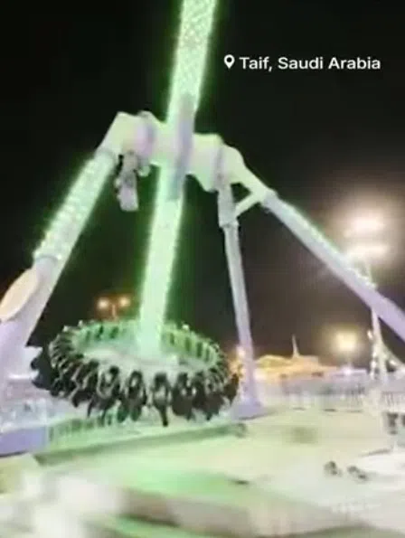 A ride at an amusement park in Saudi Arabia snapped in half while a couple dozen people were riding less than 24 hours ago.