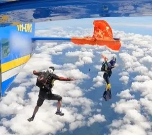 Have you seen the video of the Australian sky diver whose parachute caught on the plane's wing? It's a small skydiving plane. The guy was standing at the door, waiting to jump when his reserve chute opened up and he got sucked out of the plane. Whoosh! In less than a second, the parachute was wrapped up around the wing...